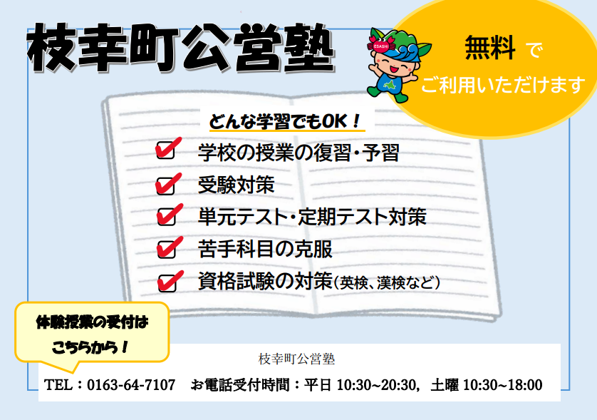 枝幸町公営塾で 中学3年生を対象とした体験授業 を実施します!